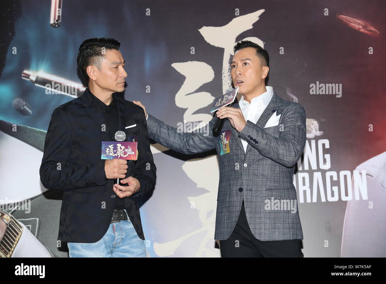 Hong Kong Actor Andy Lau Left And Donnie Yen Attend A Press
