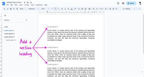 adding sections in google docs